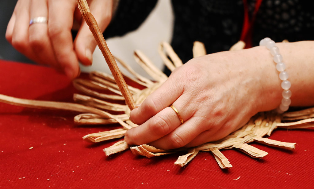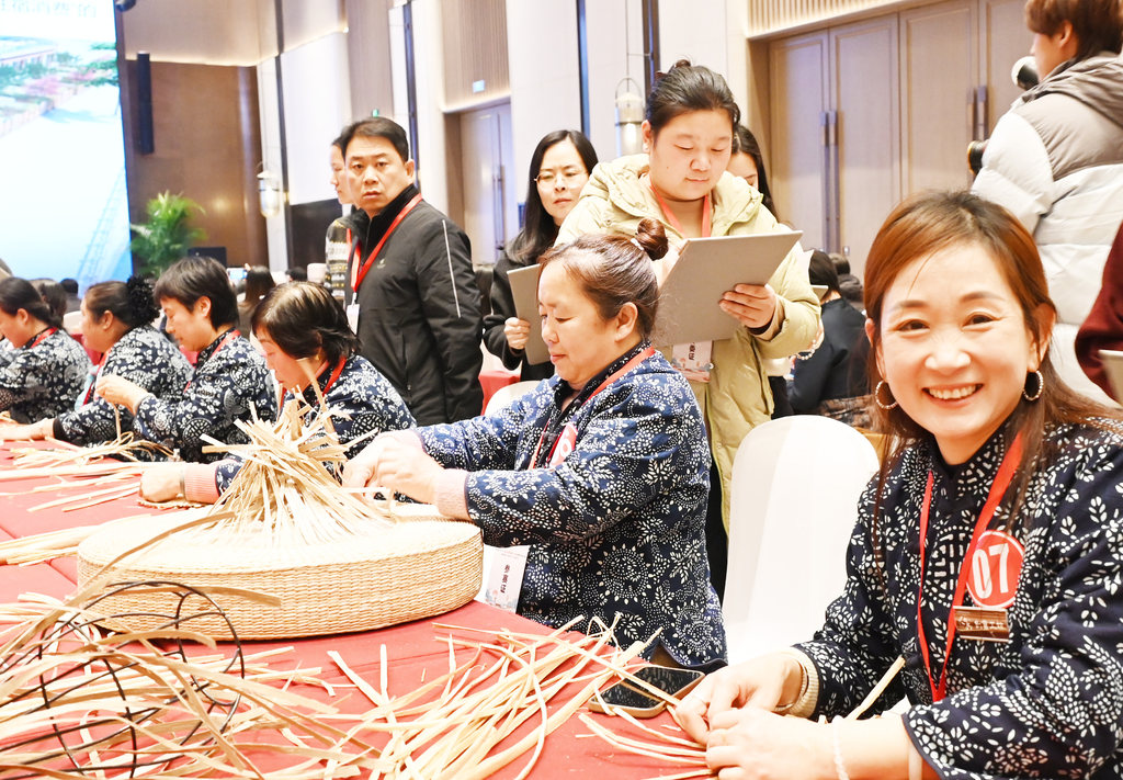 12月18日,雄安新区第一届“雄安蒲艺师”劳务品牌职业技能大赛暨“创富工坊”产品推介上,白洋淀畔的“雄安蒲艺师”们正进行着一场“指尖上的艺术”比拼。河北日报记者 刘光昱 摄