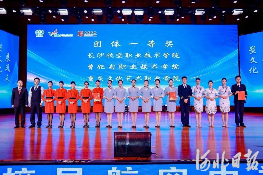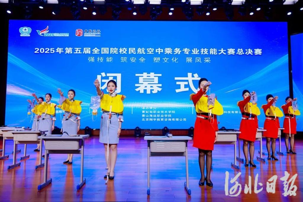 唐山海运职业学院带来的独唱《在那桃花盛开的地方》,以悠扬旋律传递家国情怀;曹妃甸职业技术学院学子献上的舞蹈《次仁拉索》,用灵动舞姿展现浓郁民族风情……闭幕式现场,文艺表演与当代民航精神交相辉映,赛事回顾与文化展演相得益彰。在文艺表演间隙,优秀赛项展示环节精彩上线,通过镜头重现了赛场上选手们在服务规范、应急处置、机上急救等核心模块的高光瞬间。