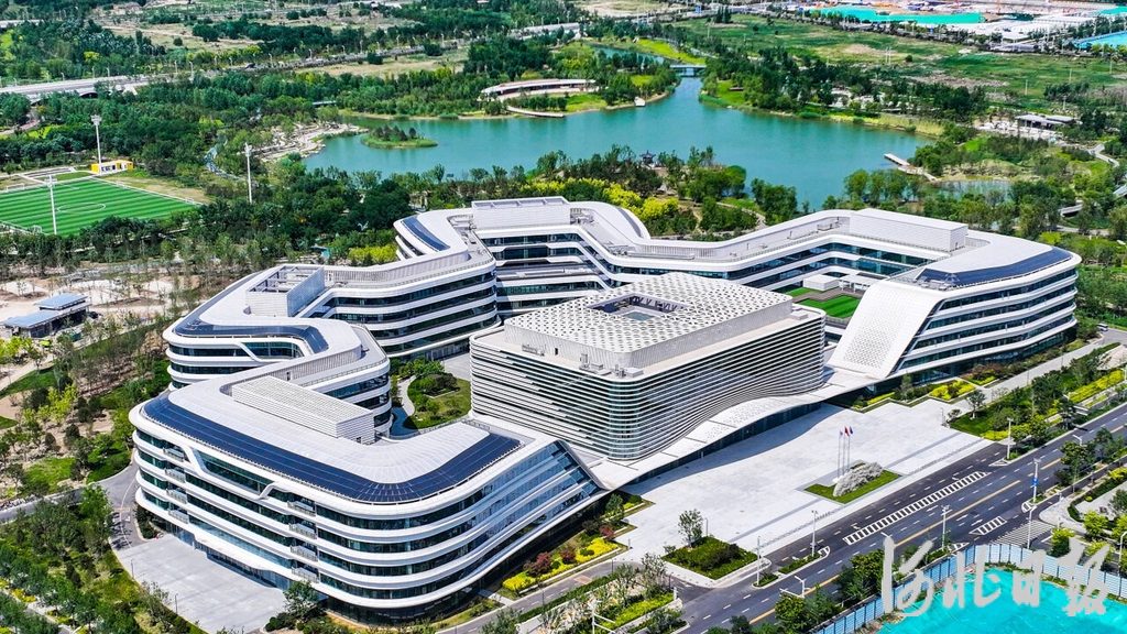 6月23日,无人机航拍的位于雄安新区启动区的中国星网总部大楼。河北日报记者 耿 辉摄