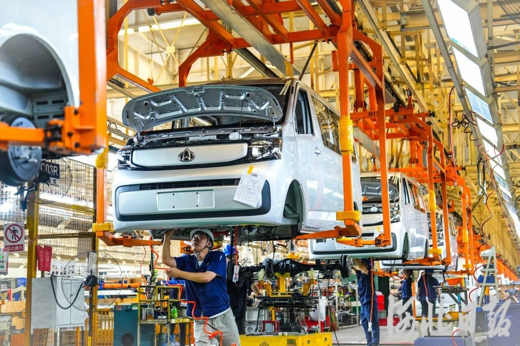 7月9日,河北长安汽车有限公司总装车间,员工在新能源汽车生产线上作业。(河北日报资料片)河北日报记者 许佳奇摄
