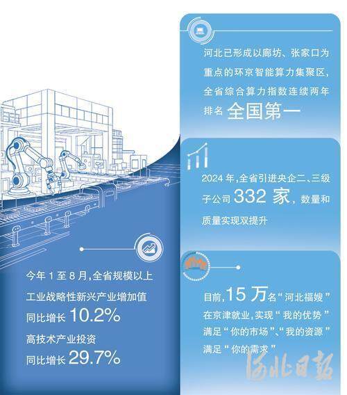 在京津冀协同发展“一盘棋”中,河北找准自身定位,全力承接京津产业转移,在对接京津、服务京津中加快发展自己。2024年,全省引进央企二、三级子公司332家,数量和质量实现双提升。