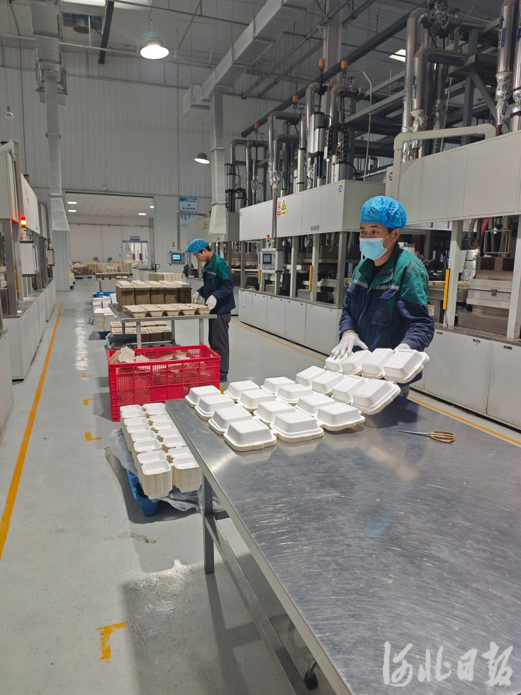 12月18日,河北谷芮环保包装制品有限公司生产车间内,工人正在对产品进行质检。河北日报记者 王思达摄