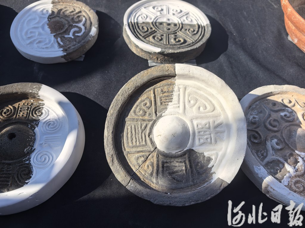 12月25日拍摄的东垣古城遗址出土的“真定长乐”文字瓦当(修复后)。河北日报记者 龚正龙摄