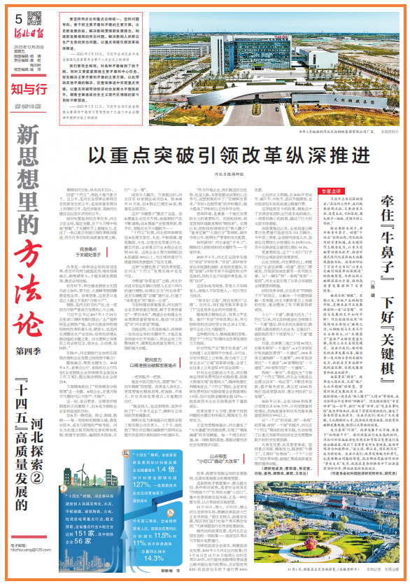 从“一个点”的突破,到“一条线”的贯通,再到“一个面”的提升,河北在“十四五”期间的改革实践,生动体现了以重点突破带动经济社会发展整体跃升的科学发展思路。