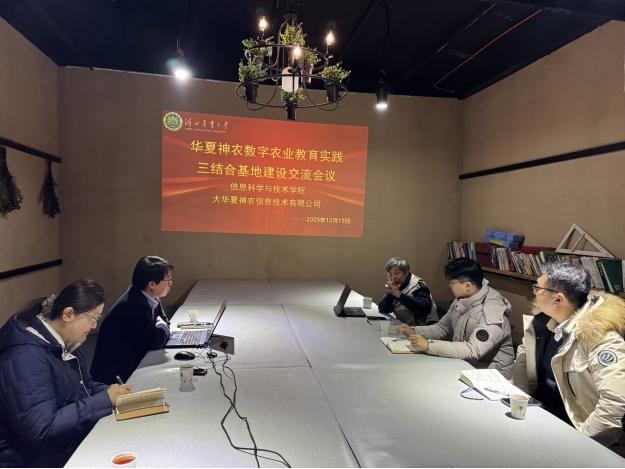 近日,河北农业大学与廊坊市大华夏神农信息技术有限公司在廊坊市中小学生研学实践教育基地举行了“科研教学生产”三结合基地对接交流会。河北农业大学信息科学与技术学院专家团队与大华夏神农信息技术有限公司管理层出席会议。会上,基地首席专家、学院副院长刘博与公司执行董事崔文顺共同确立了合作框架,标志着双方在数字农业研发与人才培养领域的合作正式进入标准化、规范化的实质性阶段。
