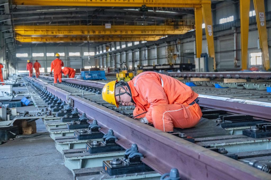 12月25日,位于秦皇岛市山海关区的中铁山桥集团有限公司生产车间,工人在进行道岔组装作业。