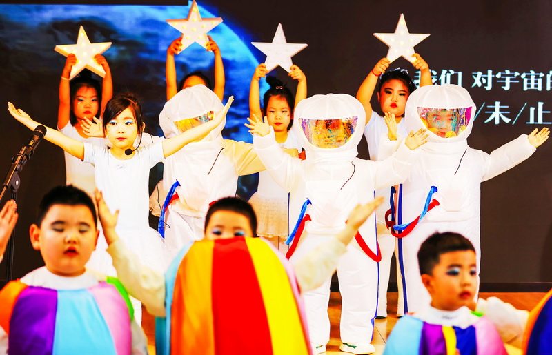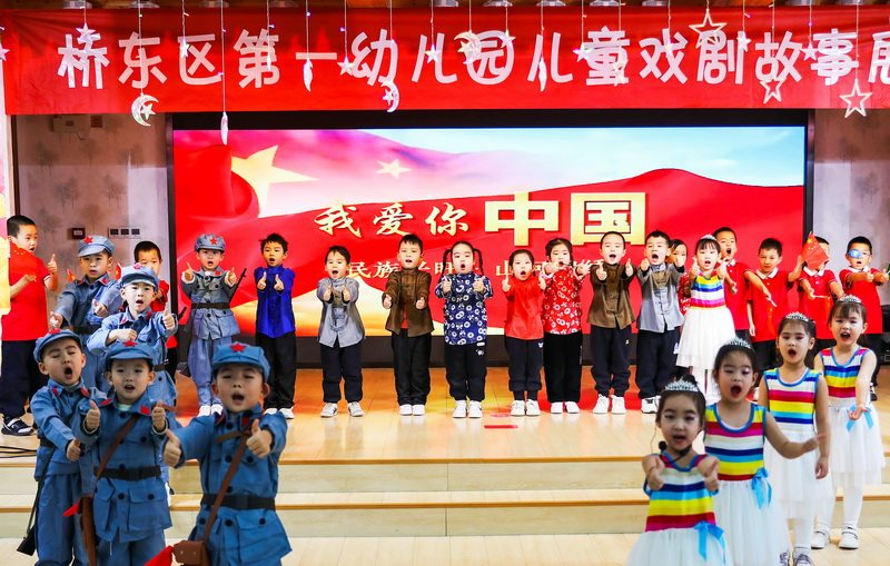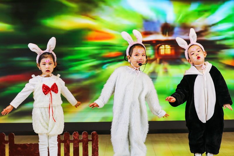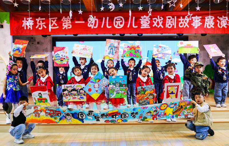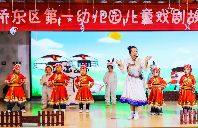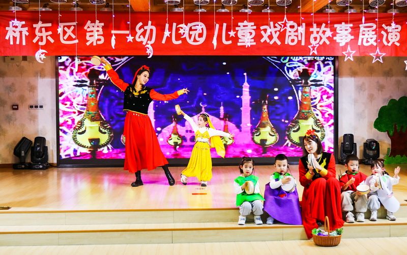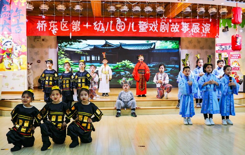 12月25日,张家口市桥东区第一幼儿园的师生和家长在表演迎新年情景剧。