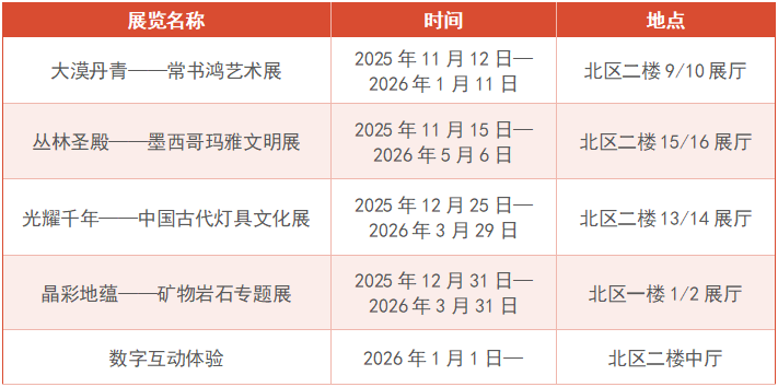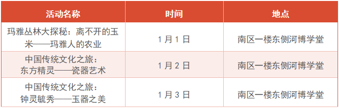 结合节庆与临展,将开展“中国传统文化之旅”“玛雅丛林大探秘”等品牌教育项目及主题活动。