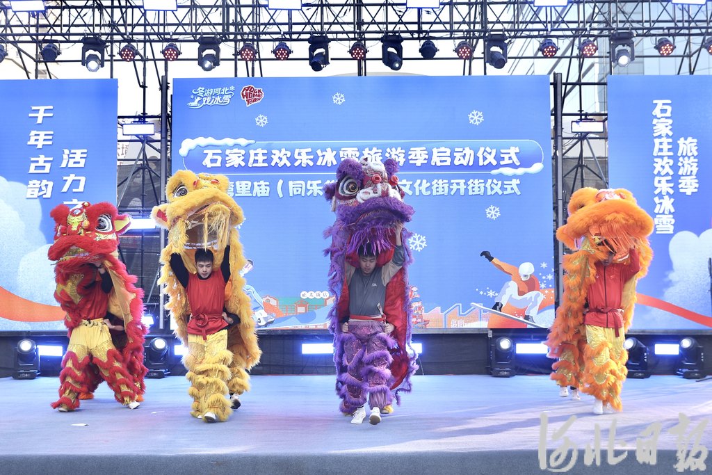 随着全场倒计时,石家庄欢乐冰雪旅游季正式拉开帷幕。随后的舞狮表演寓意吉祥,寄托对文旅发展的美好祝愿。在舞狮引领下,市民沿同乐街开启戏曲巡游,北方戏曲串接连番上演,让大家沉浸式感受传统文化魅力。