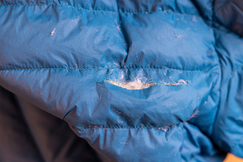 羽绒服破损:内衬或接缝处破损导致羽绒纤维持续外漏。