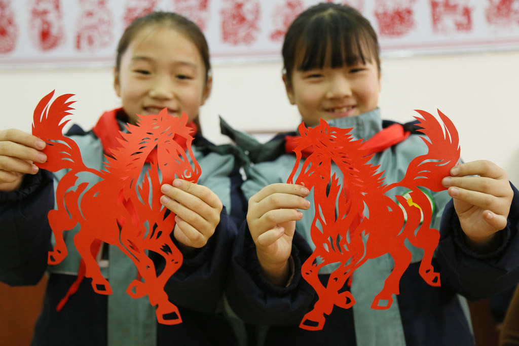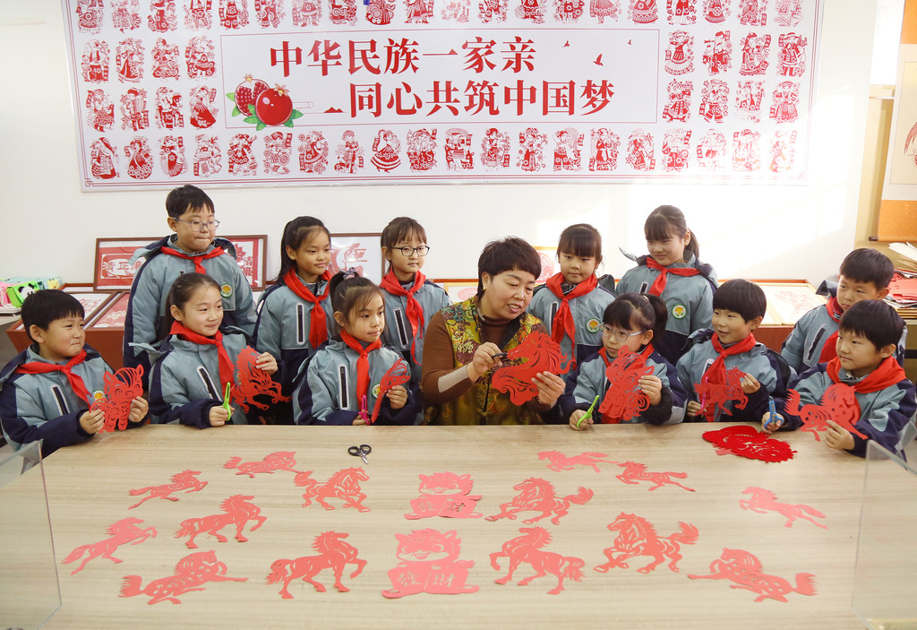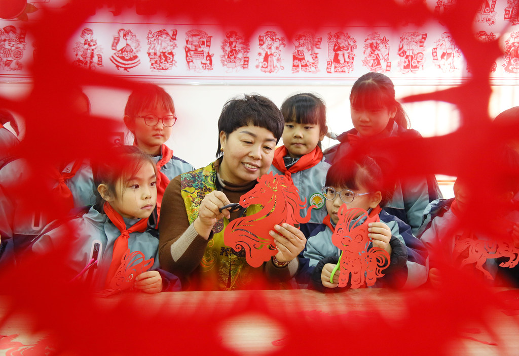 师生们通过剪纸