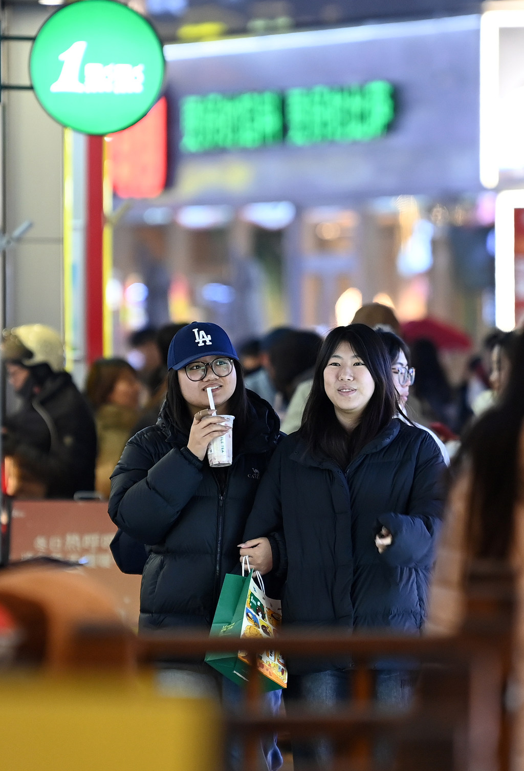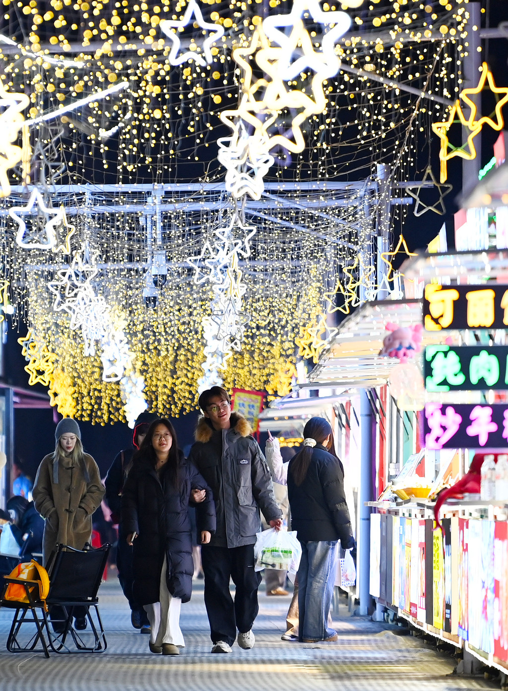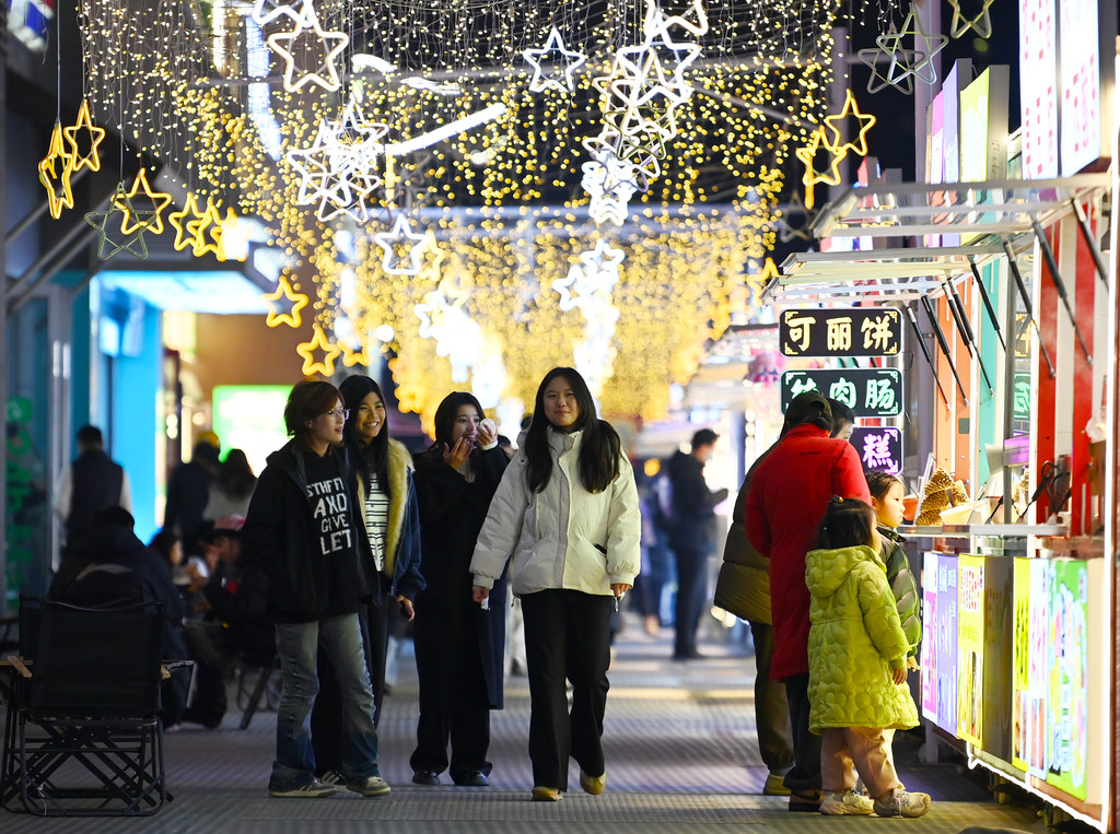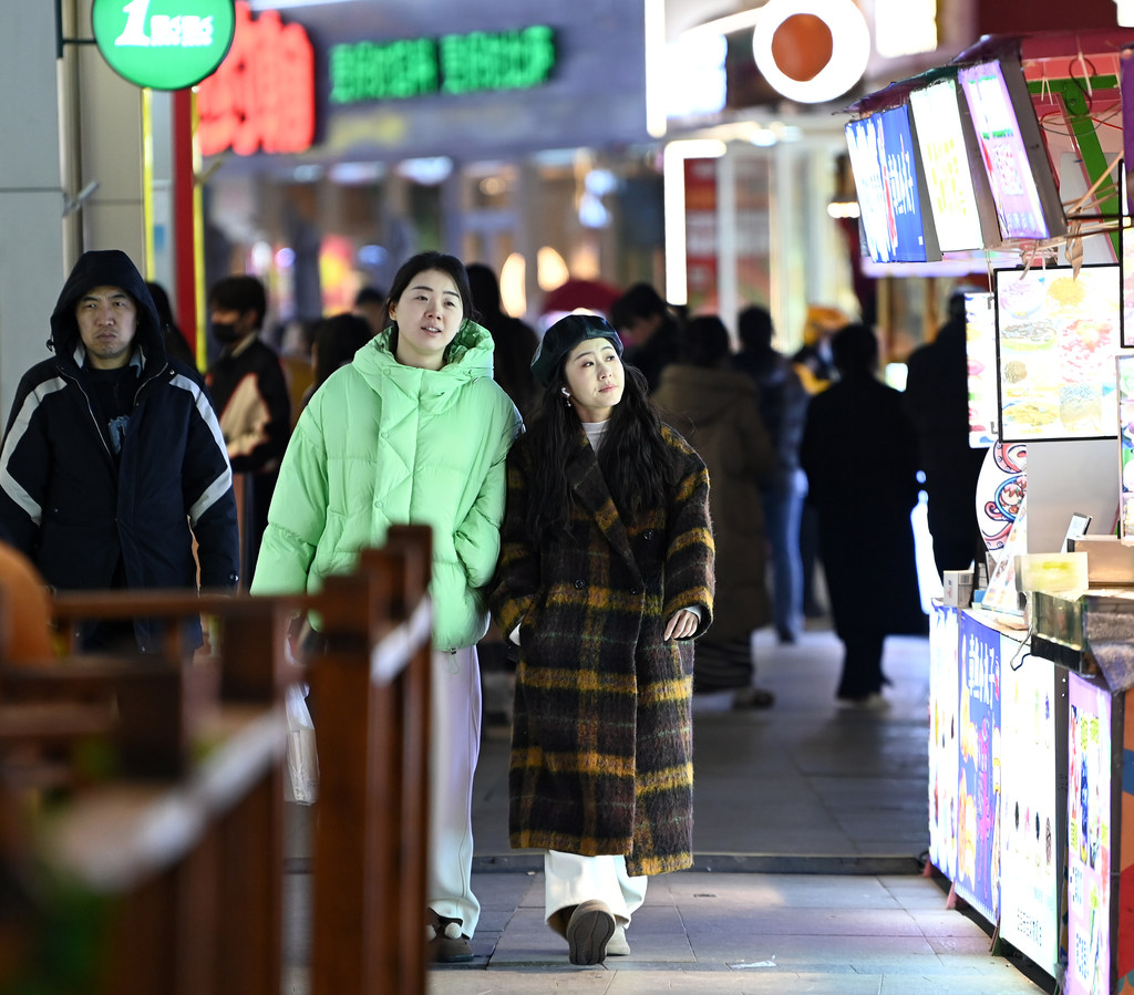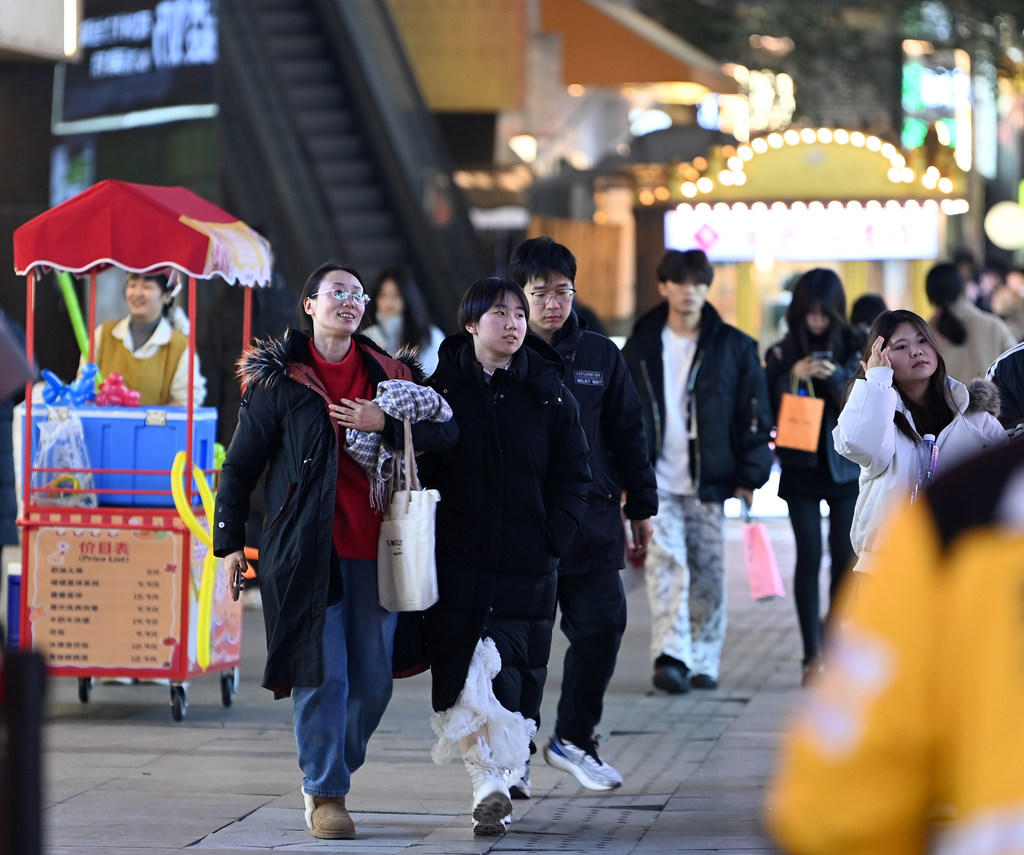 12月26日,市民在石家庄市勒泰中心庄里街休闲游玩。