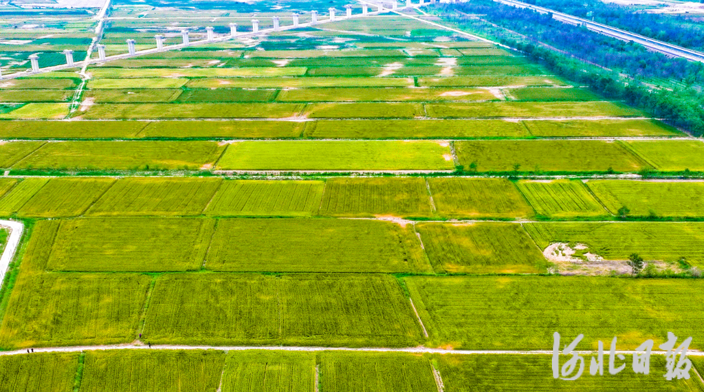 5月22日,航拍渤海新区黄骅市旧城镇仙庄片区旱碱地麦田。河北日报记者李佳泽摄