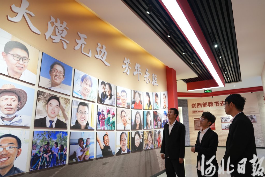 在且末县第一中学,河北援疆教师参观保定学院西部支教毕业生群体事迹展示馆。