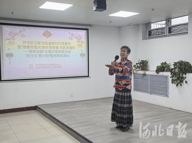 河北日报客户端讯(宋洁琳、王育民)元旦将至,为丰富老年人精神文化生活,搭建“一老一小”互动交流桥梁,唐山市开平区马家沟街道新时代文明实践所,在颐坤园老年公寓举办了以“庆元旦 暖夕阳”为主题的敬老慰问演出活动。