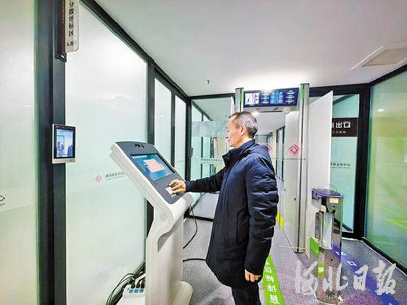 12月25日,评标专家在唐山市公共资源交易中心评标区签到机前,自助核验身份开启门禁。 河北日报记者王育民摄