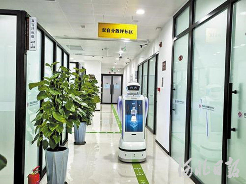 12月25日,唐山市公共资源交易中心内,智能机器人在评标区巡检。 河北日报记者王育民摄
