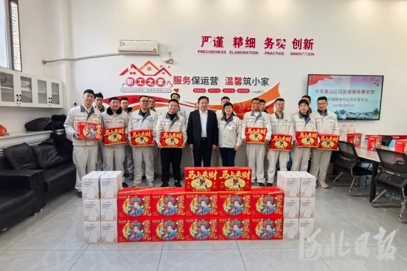 图为中车唐山公司为长期坚守在铁路运维一线的驻外职工送上暖心慰问品与节日祝福。