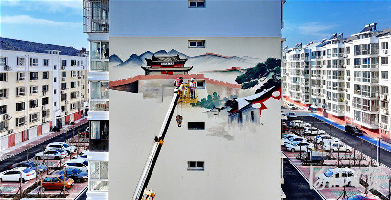 11月3日,秦皇岛市海港区东环路街道红光北里小区内,工人正在进行墙体彩绘。该小区在改造过程中,对老旧管网进行更新,修复硬化破损道路,粉刷修缮楼体与楼道,同时增补了停车位、健身器材、垃圾分类亭等。曹建雄摄