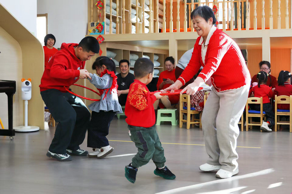 2025年12月31日,张家口市桥东区红旗楼幼儿园孩子们和家长欢乐互动。
