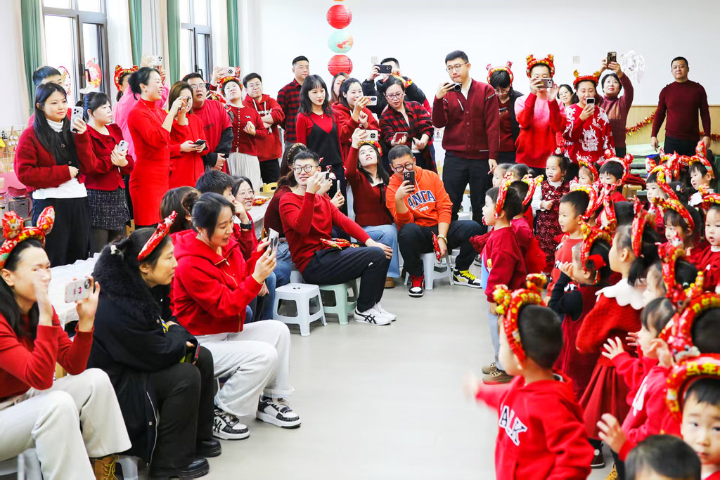 2025年12月31日,家长们纷纷为表演节目的孩子们拍照留念。