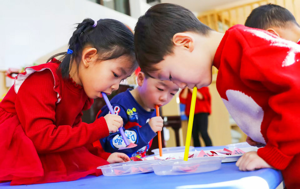 2025年12月31日,张家口市桥东区红旗楼幼儿园孩子们在做游戏。