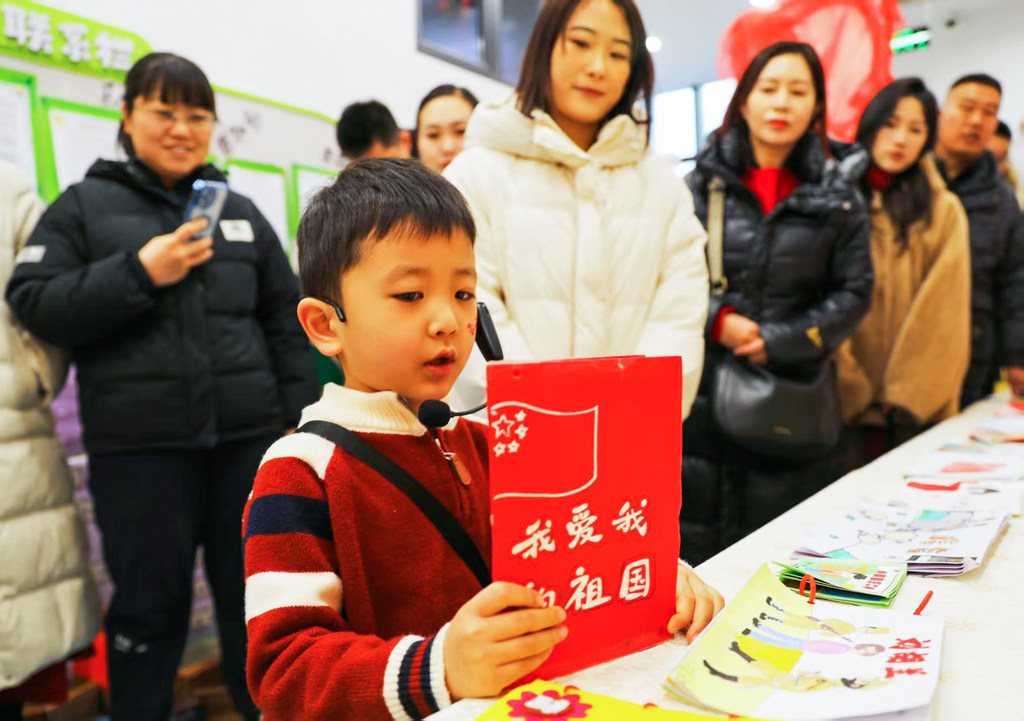 2025年12月31日,张家口市桥东区红旗楼幼儿园的小朋友在为家长展示学习成果。