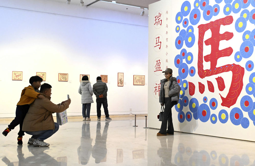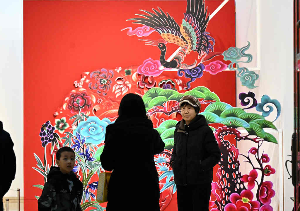 ↑12月27日,参观者在石家庄市美术馆“生生复象”年画艺术展上留影。