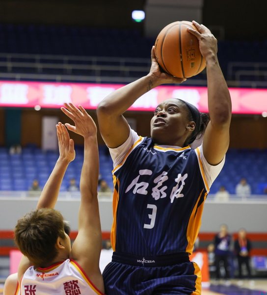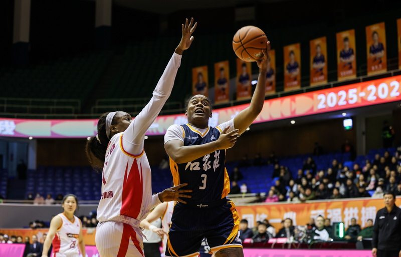 2025年12月31日,石家庄英励3号外援戴维斯(右)在比赛中。