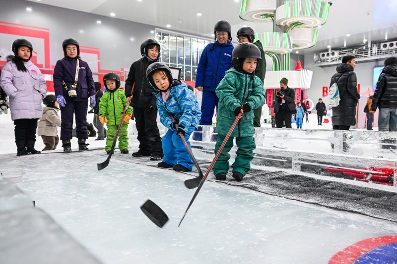 2026年1月1日,市民在体验冰雪运动。