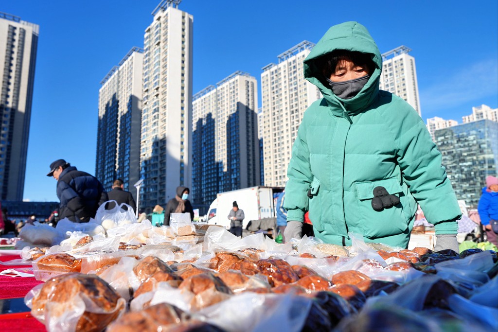 2025年12月31日,市民在廊坊市广阳区财富市集开办的便民大集上选购熟食。