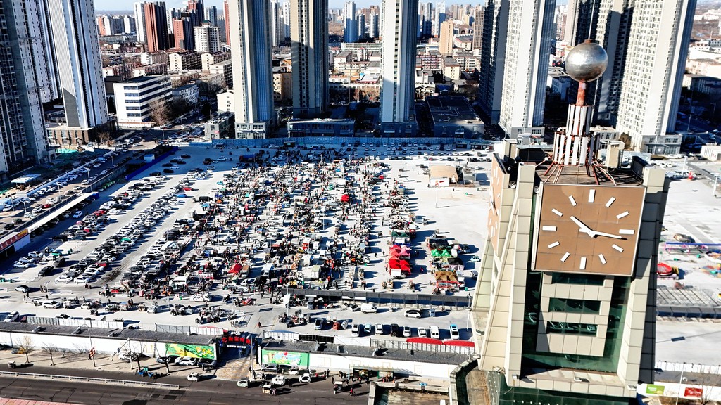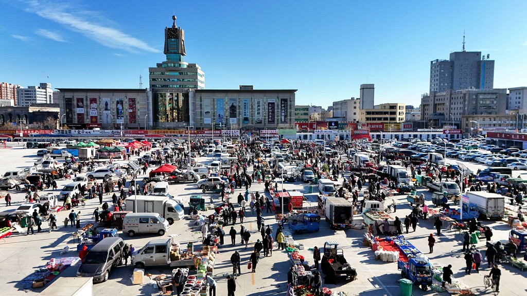 2025年12月31日,空中俯瞰廊坊市广阳区财富市集开办的便民大集。