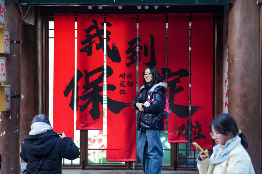 1月1日,游客在保定西大街打卡拍照。