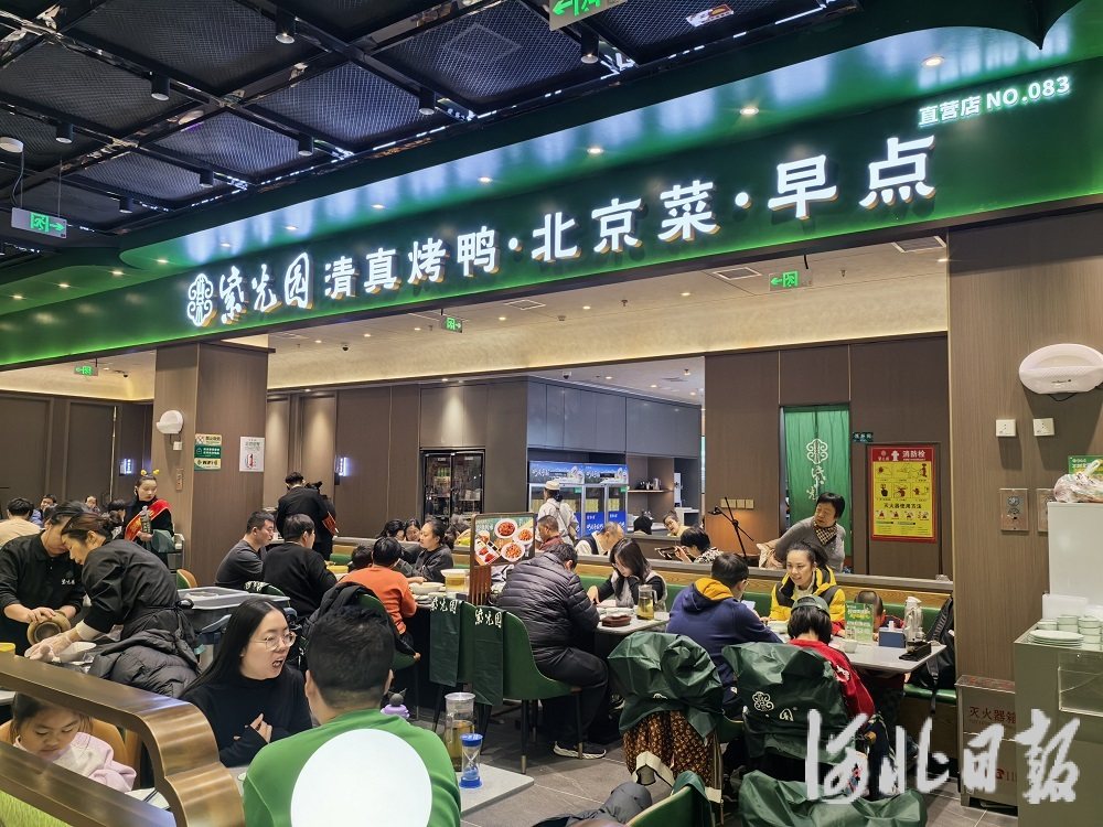 1月3日12时,位于石家庄市中山路上的紫光园餐厅座无虚席,门口还有不少食客正在排队等候。市民王晓萌一家五口专程来到这里,点了北京烤鸭等招牌菜。“听说这是石家庄首家紫光园餐厅,一直想来尝尝,正好趁着假期来打卡。”王晓萌说。