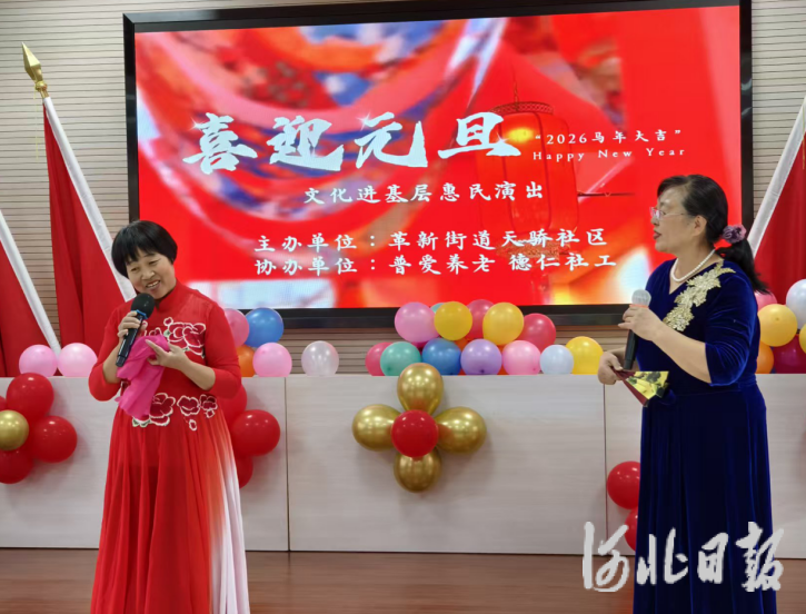 河北日报客户端讯(马勉)2025年12月31日,石家庄市新华区天骄社区联合街道慈善工作站、河北普爱养老服务有限公司在新时代文明实践站举办“庆元旦迎新年·共筑幸福家园”主题联欢会。