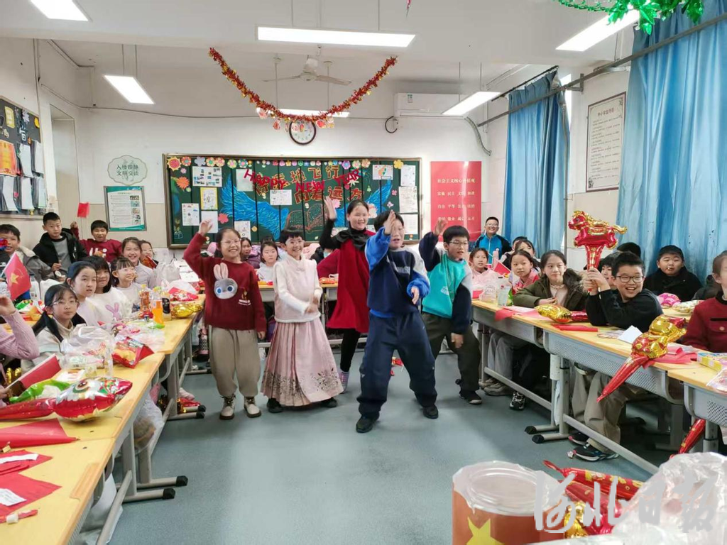 近日,石家庄市新华区各中小学、幼儿园以班级为单位陆续开展主题丰富、形式多样的迎新年联欢会,师生们欢聚一堂,用歌声、舞蹈、游戏等多种方式喜迎新年到来,校园内洋溢着温馨祥和、喜庆热烈的氛围。
