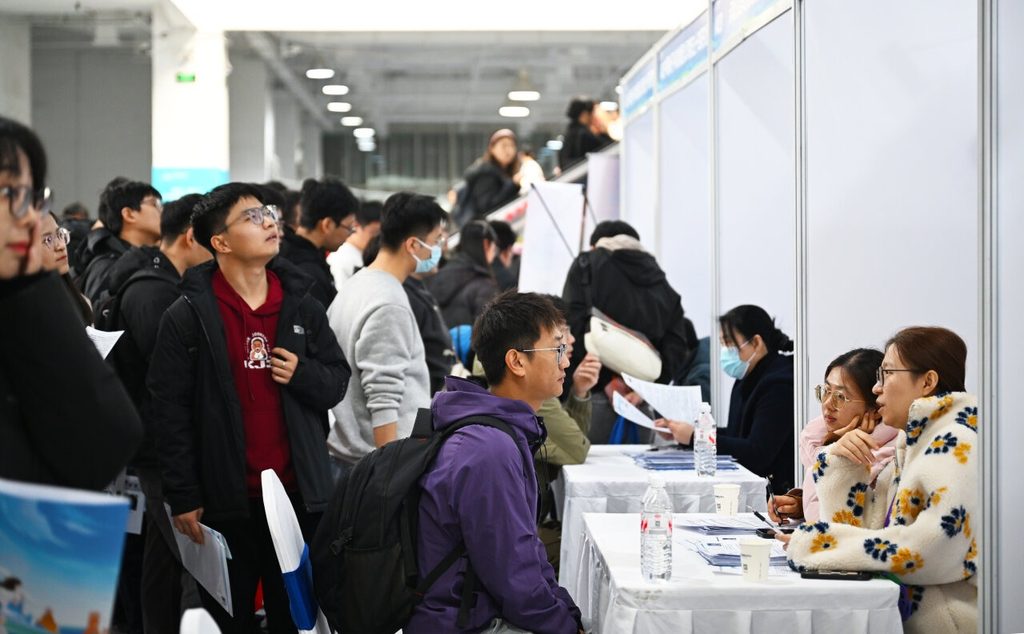 2025年,河北各地团组织积极开展就业引航活动,助力青年拓宽择业视野、提升求职能力。图为2025年11月8月,求职者在石家庄国际博览中心了解用人信息。河北日报记者 赵永辉摄