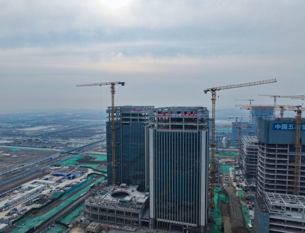 1月4日,无人机航拍的雄安新区启动区财富大厦项目。该项目未来将成为雄安承接北京金融机构疏解、服务京雄金融资源联动的重要载体。河北日报见习记者 李畅 摄