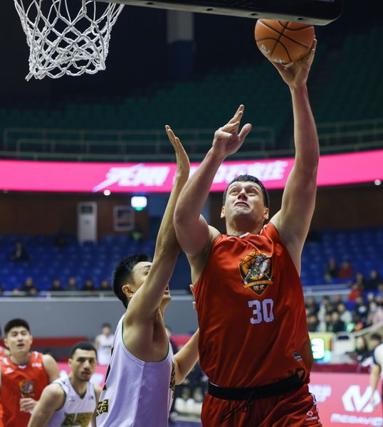 1月4日,石家庄翔蓝队外援30号科伦纽克(右一)在比赛中。