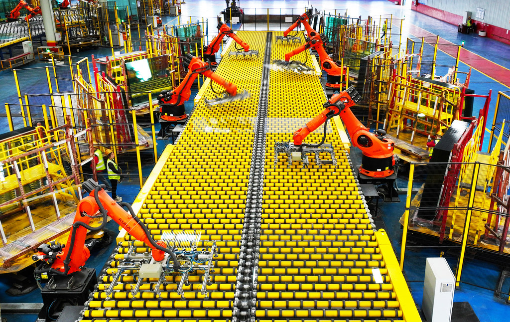 沙河市鸿昇玻璃有限公司借助先进的设备技术、节能工艺,产品深加工后应用于太阳能基板等高新技术领域。图为2025年3月21日拍摄的玻璃生产线。河北日报记者赵永辉摄