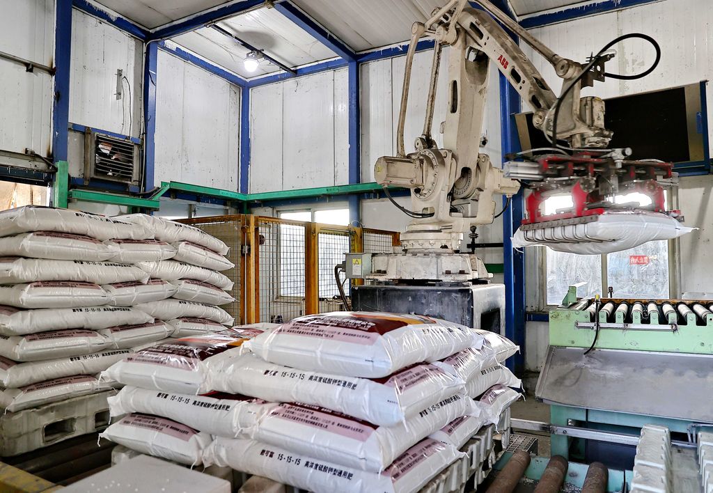1月5日,位于秦皇岛市海港区的中国-阿拉伯化肥有限公司,自动化机械手正在进行码垛作业。