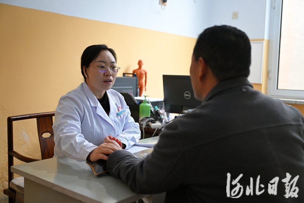 2025年11月5日,在内丘县柳林中心卫生院国医堂坐诊的内丘县中医院主治医师董培琳为患者诊断病情。