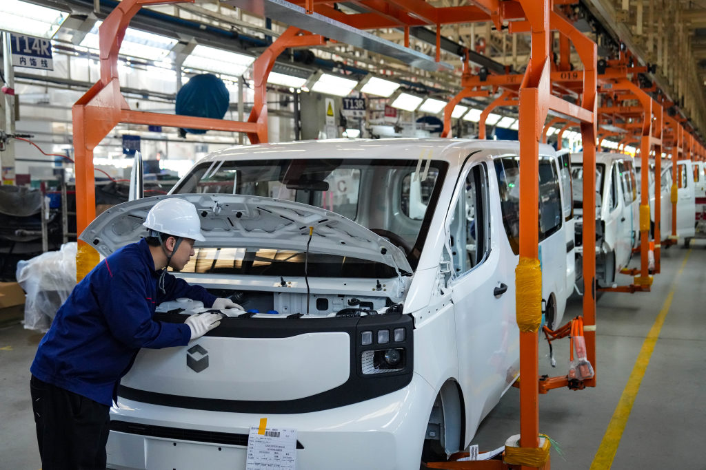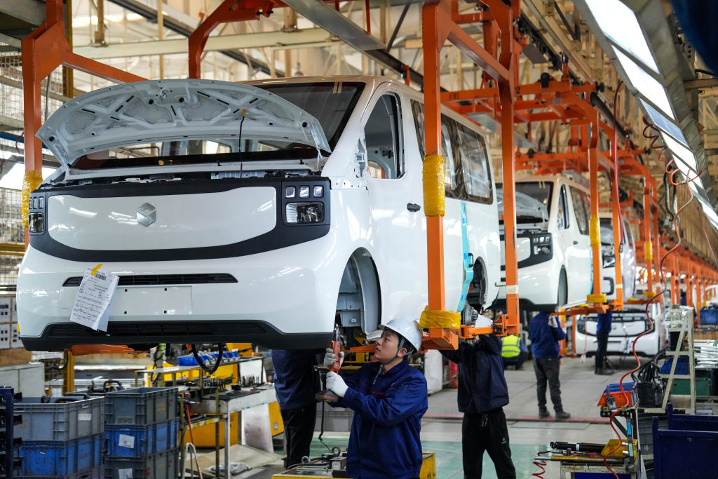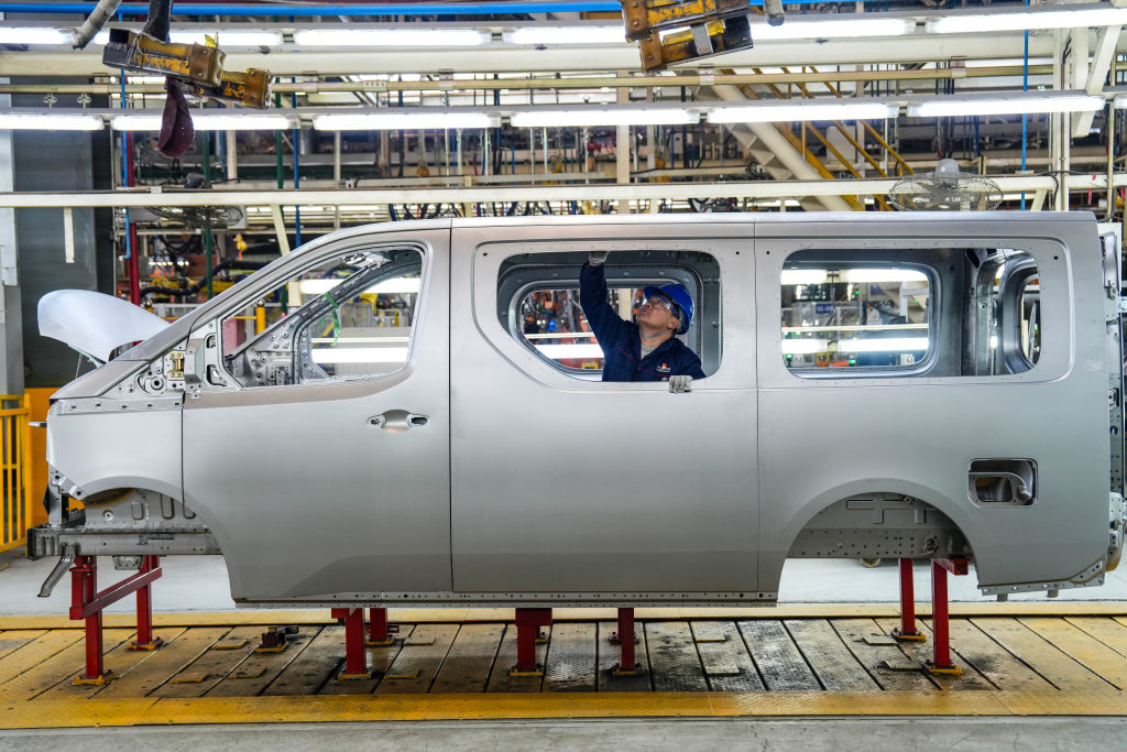 1月6日,河北长安汽车有限公司总装车间,员工在新能源汽车生产线上作业。