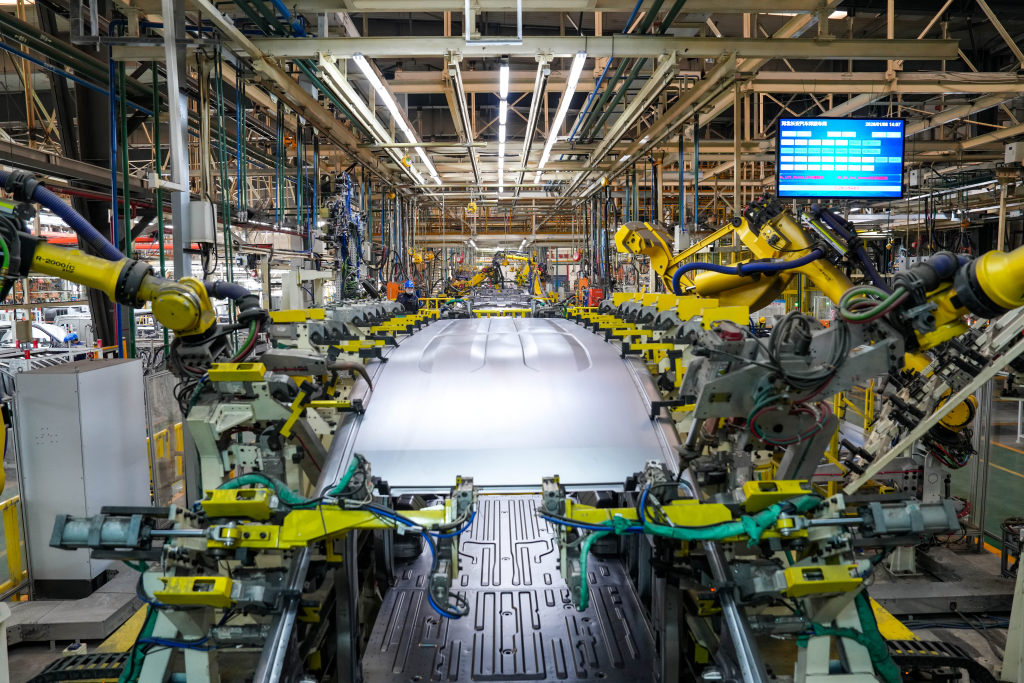 1月6日,河北长安汽车有限公司焊接车间,机器人在进行车身焊接组装。