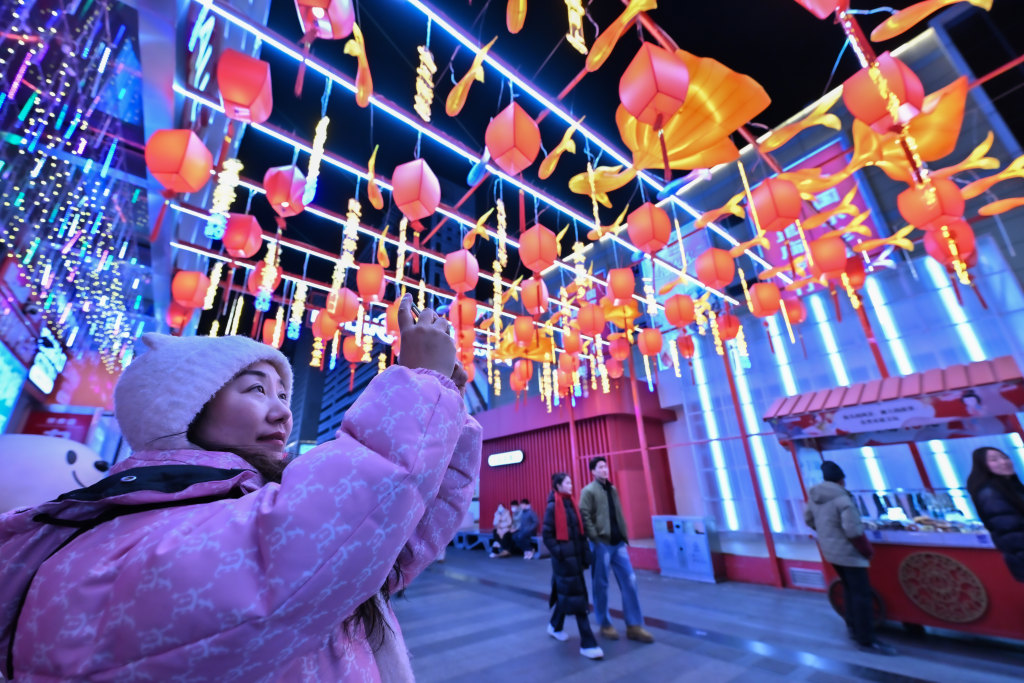 璀璨的光影吸引市民和游客驻足观赏、拍照打卡。