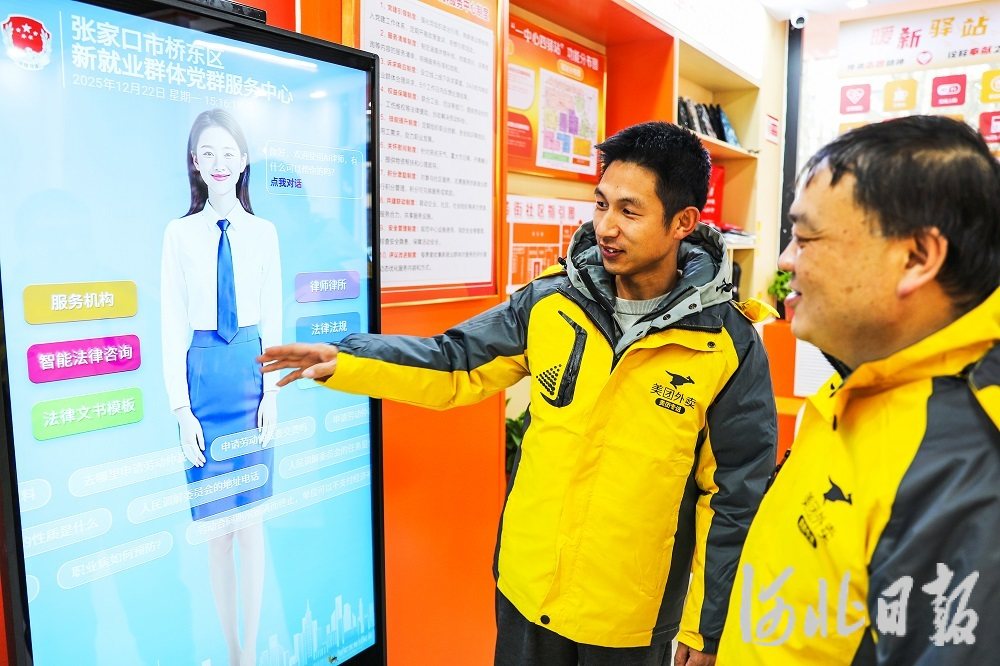 近日,张家口市桥东区商务街社区暖新驿站正式开放。除提供充电、热饭、洗衣、洗澡等基础服务外,该暖新驿站还采取“人工智能+律师团队”模式为新就业群体提供劳动合同签订、薪资薪酬结算等法律咨询服务。河北日报记者耿辉摄