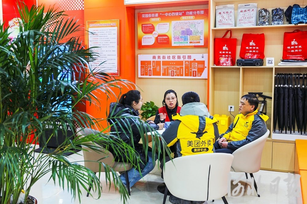 律师在暖新驿站为送餐骑手进行法律咨询服务。