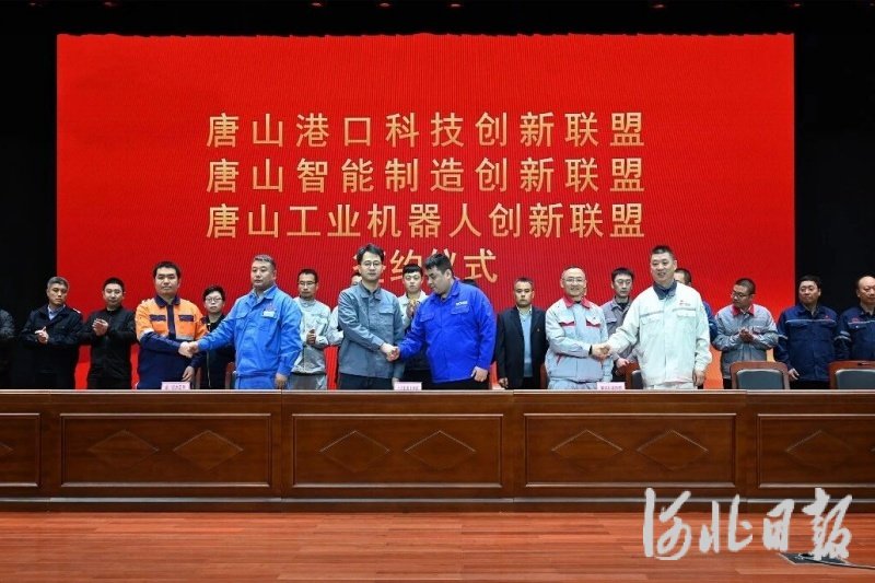 唐山港口科技创新联盟由曹妃甸港、首钢京唐、唐山港集团等行业骨干企业的创新工作室共同组建,是推进港口科技协同创新和产业工人素质提升的重要平台。在本次推进会现场,港口科技、智能制造、工业机器人三大创新联盟同步完成集中签约,初步构建起“政企协同、产学研联动”的创新生态体系。