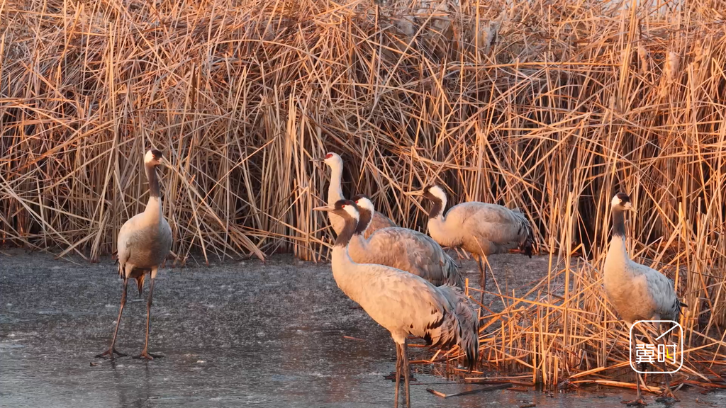 1月6日,衡水湖冰面如镜,成群的灰鹤在冰面芦苇丛边觅食、展翅翱翔。在灰鹤群中有一只与众不同的鹤,它体型修长,头顶红色裸露皮肤醒目。保护区工作人员将照片发给正在衡水湖开展调查的东北林业大学李晓民教授,经鉴定,这只鹤为沙丘鹤,沙丘鹤体型较大,身长1.0至1.2米,翼展1.8至2.0米,羽毛灰色,有锈色斑点,成年个体头顶有红色裸露皮肤,脚和喙为深绿色至黑色。沙丘鹤繁殖区域广泛分布于北美,从美国东北部到加拿大中部,直至阿拉斯加和西伯利亚东部。越冬地至墨西哥中北部,偶见于中国。此次在衡水湖监测到也实属罕见。它在冰面与灰鹤、白枕鹤、白头鹤共同构成“鹤舞冰面”的独特景观。监测数据显示,目前衡水湖越冬灰鹤数量已超2000只。