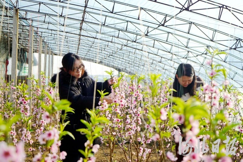 “现在是设施桃开花坐果的阶段,我们正忙着疏花、授粉、控制水肥和温度,为二到三月果实生长做好准备。”该镇艾台子庄村桃农李晓晨说。